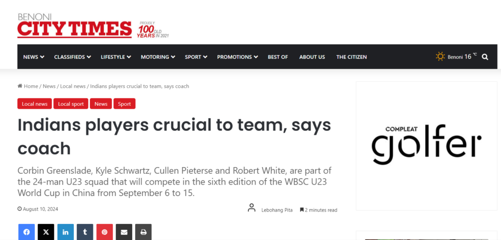 At the Benoni Northerns Indians Ball Club., senior players benefit from top-notch coaching while being part of a renowned and vibrant baseball community.